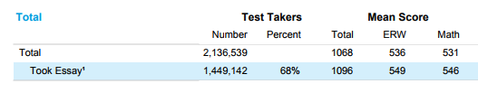 其中不考写作的考生,阅读平均分为536,数学平均分为531。而选择考写作的同学,阅读平均分是549,而数学平均分是546,大概各有一道题的差距。