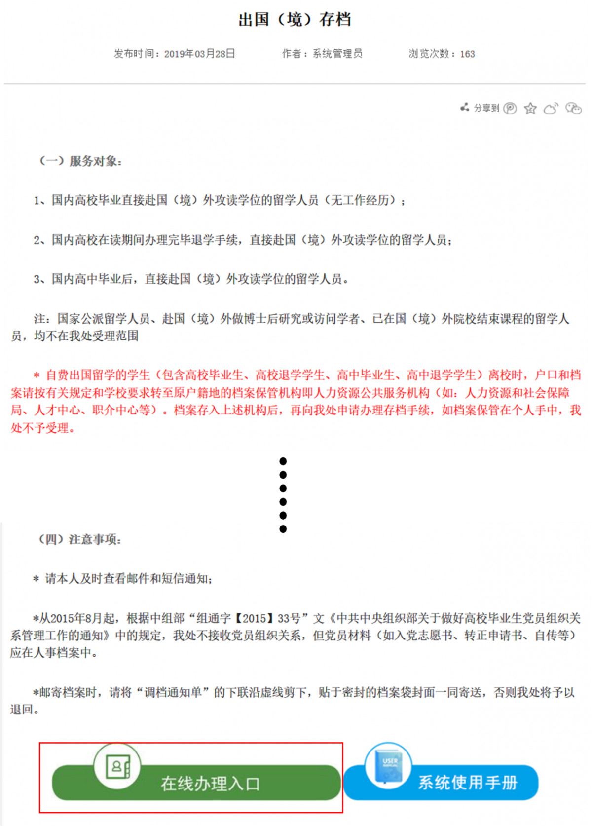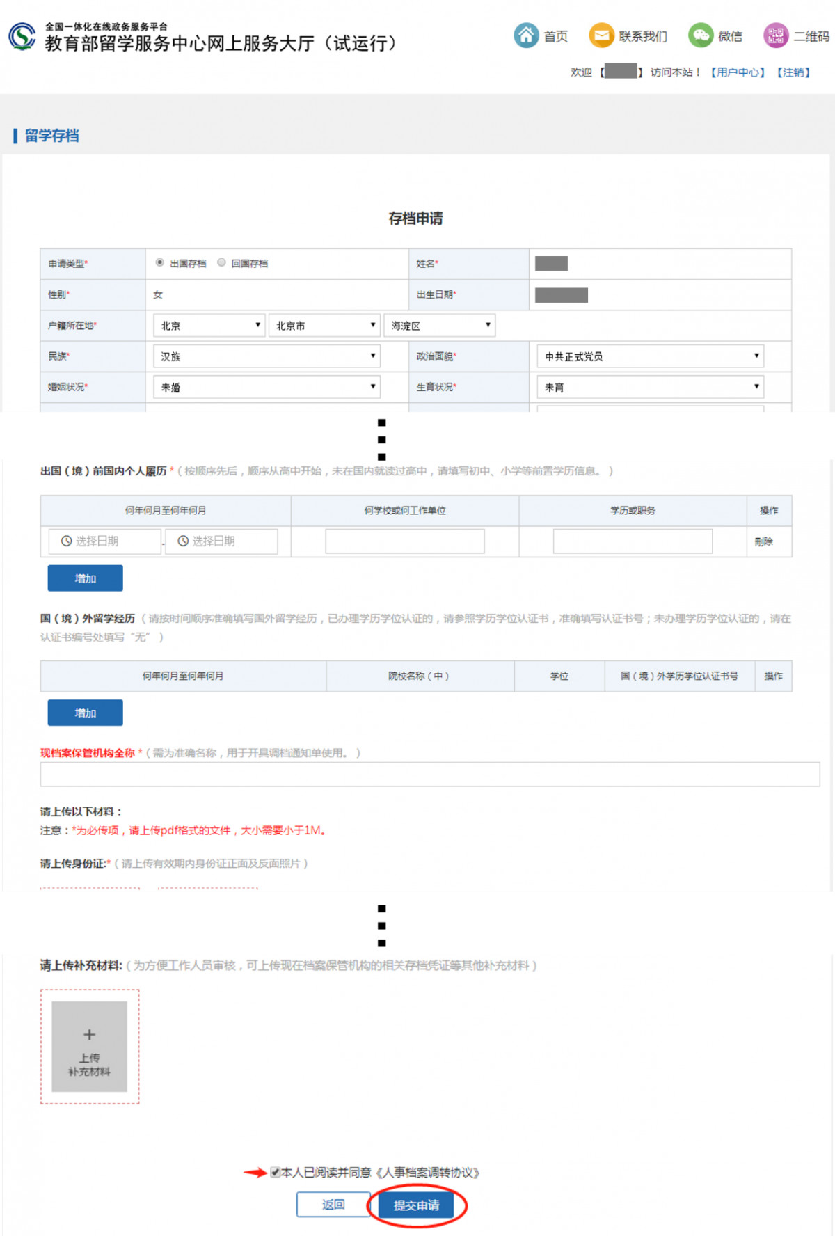 新版留学存档系统上线之后,所有档案业务,包括档案存入、档案转出、开具人事档案证明、党员组织关系转出、材料借出、补退费,统统都在线办理。