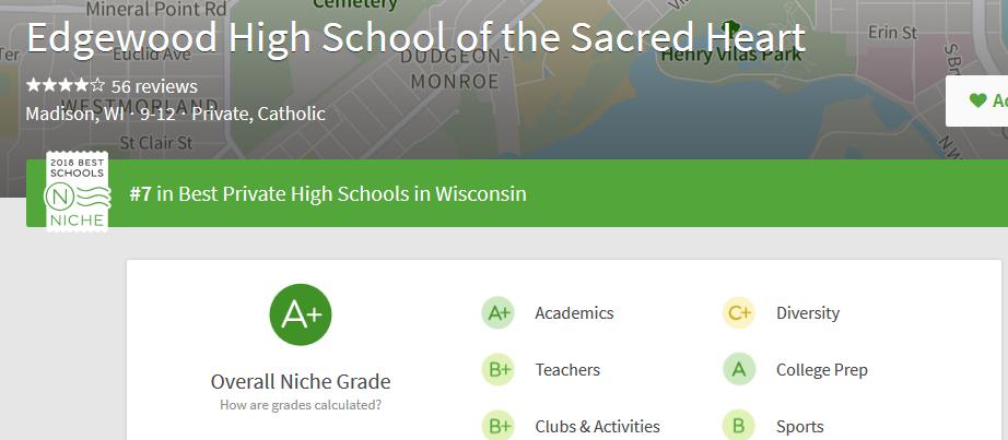 Ø Niche总评A+级校,2017年威斯康辛州私校排名第7,全国排名top15%