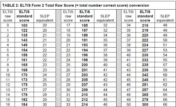 ELTiS考试现存考试形式不是唯一的。由于考试的标准分数是不变的,因而多套试卷都可以被使用。